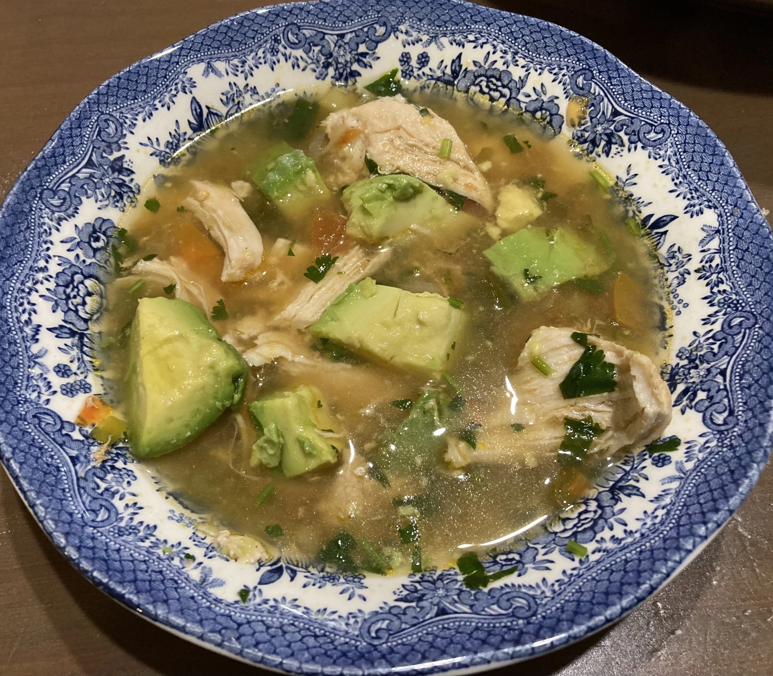 Kanakeitto limellä ja avokadolla